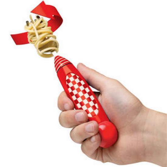 See, we’ll install a small battery operated motor and when you turn it on, the head of the fork will spin and twirl the pasta onto it for you.