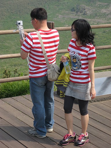 shame, the girl in beige pants and grey vest is stuck in a his and her sandwich. run girl, run for your life!