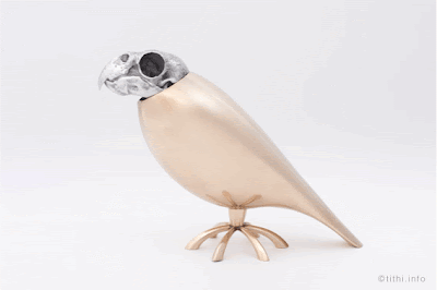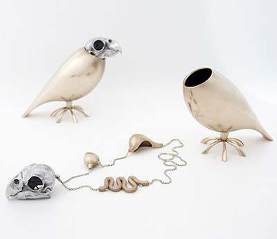 A Parrot’s Guts Necklace is a life-sized bronze, silver and aluminium parrot, and it turns into a necklace with a parrot’s skull and organs – like the intestines and heart – which dangle off the necklace like charms.