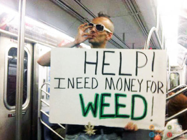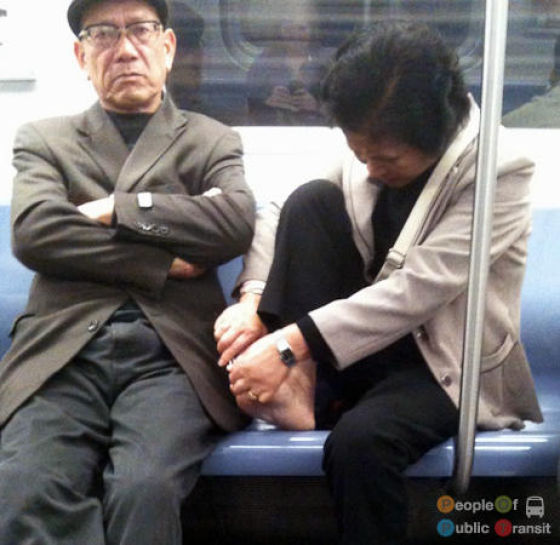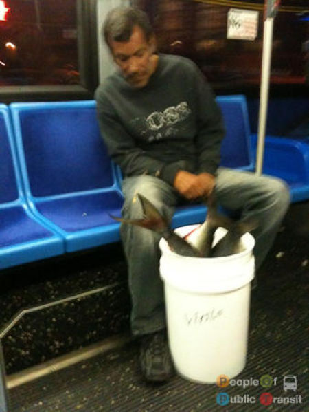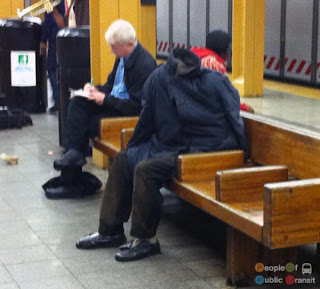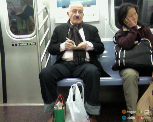 A man reading a book, yes that is a strange thing you might see on the subway.